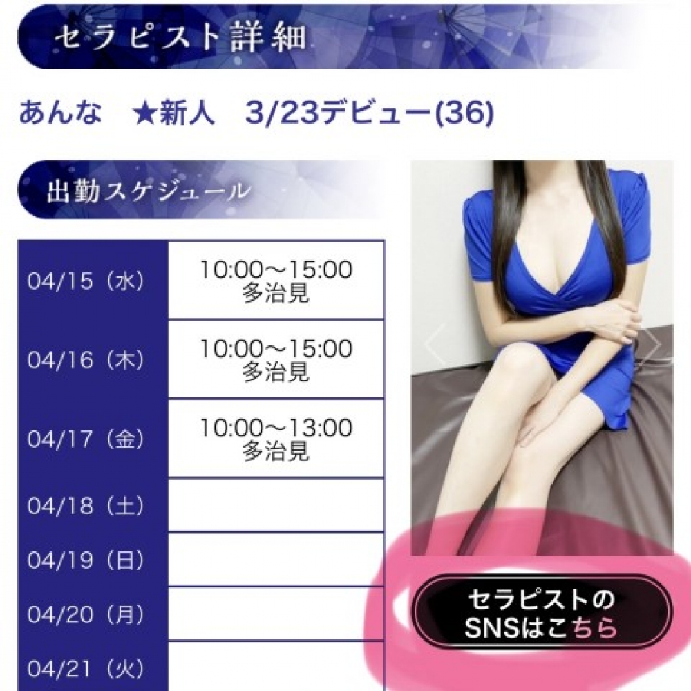 【多治見あんな】本日の予約状況